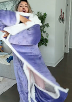 Designed with upgraded Sherpa and flannel, it provides soft, soothing heat from head to toe — complete with sleeves, hood, and foot pockets for total coverage.